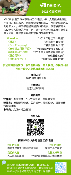 正文摘要:NVIDIA 打造了一個(gè)與眾不同的工作場(chǎng)所,在這里每個(gè)人都能做出貢獻(xiàn),并有歸屬感。無(wú)論是在醫(yī)療健康、機(jī)器人技術(shù)、自動(dòng)駕駛汽車(chē)還是電影制作方面,新的機(jī)會(huì)源源不斷,供您發(fā)揮所長(zhǎng)。我們希望 NVIDIA 成為一個(gè)員工可以 ... |
